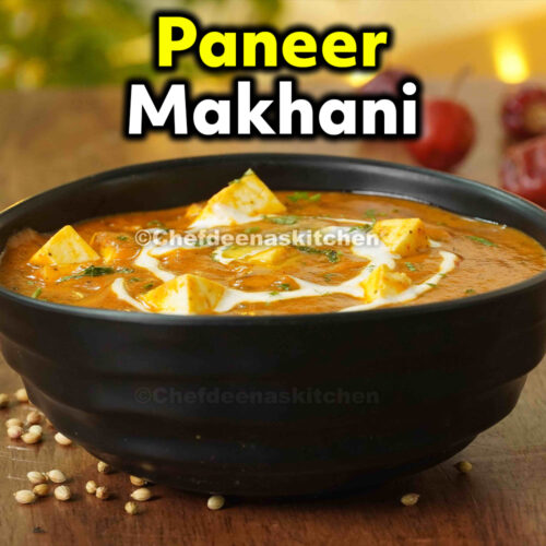 In Chef Deena's Kitchen, paneer makhani is made by boiling Onions, Tomatoes, Ginger, Garlic grounding them together. The ground mixture is then simmered with cream and butter to create a creamy sauce.